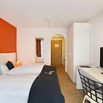 The rooms with bunk beds, newly renovated bathrooms and free WiFi. Friendliness from the whole staff. Stores and a good supermarket were right next door. Took a walk around city center, located at a medium distance from the hotel.